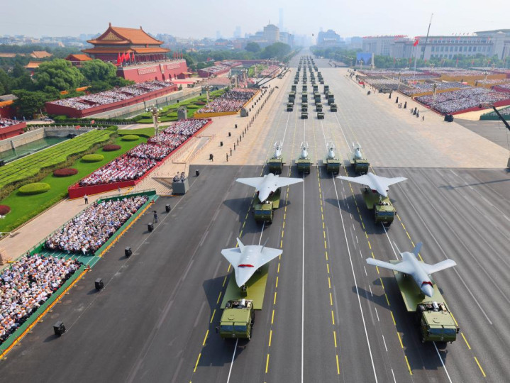 9月3日,纪念中国人民抗日战争暨世界反法西斯战争胜利80周年大会在北京隆重举行。这是装备方队接受检阅。新华社记者刘续摄